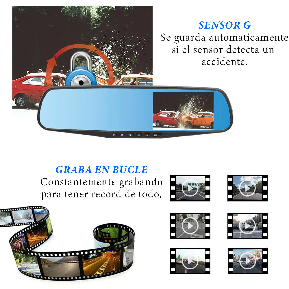 Captura todos los detalles con calidad 1080p en ambos sentidos del vehículo. Ideal para respaldar cualquier incidente o simplemente conducir más tranquilo.